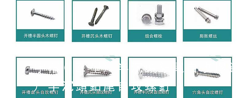 1.機螺釘 2.自攻螺釘 3.鉆尾螺釘 4.墻板釘 5.纖維板釘 6.木螺釘7.六角木螺釘 8.不脫出螺釘 9.組合螺釘 10.微型螺釘 11.家具螺釘 12.電子螺釘 頭型 :1.六角頭(hexagon head) 2.六角頭法蘭面(hexagon head 鉆尾螺絲根據執行標準可分為:國標GB/T,德標DIN,日標JIS,國際標準ISO。A. 根據用途和形狀還可以分為以下幾個類別:1.十字槽盤頭自鉆自攻螺釘.Cross recessed pan head drilling screws with tapping screw thread 執行標