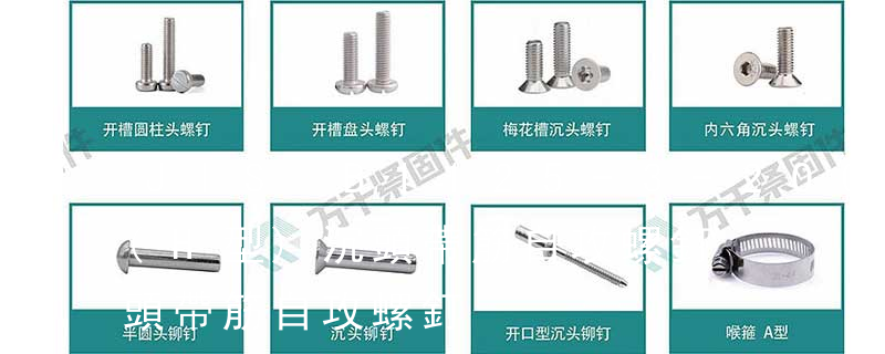 螺栓有:1、方頭螺栓,2、半圓頭方頸螺栓,3、十字槽盤頭螺釘,4、內六角沉頭螺釘,5、方螺母C級,6、蝶形螺母,7、六角頭螺栓,8、十字槽盤頭自攻螺釘。大小有M18、M6、M8、M16、M10、M12、M14、M20等型號。通常用 自攻螺釘選用通常的規則:自攻為4個螺距,機械螺釘為3個螺距,這是最小的旋合長度,按照實驗的條件會有所加長。每一個自攻螺釘都是由頭部、桿部和桿部末端三部分組成的。每一個自攻螺釘的構成都有四大要素:頭部形狀、扳