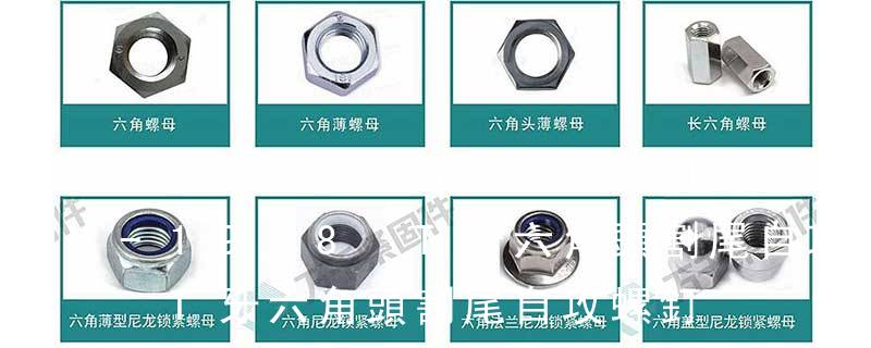 內角60度,外角120度。二、六角螺帽 六角螺帽也叫做六角螺母,一般螺帽有很多種類,有六角螺帽,有圓螺帽,方型螺帽等。六角螺母與螺絲、螺栓,螺釘相到配合的使用,起連接緊固機件作用。其中經1型六用螺母應用最廣,C級