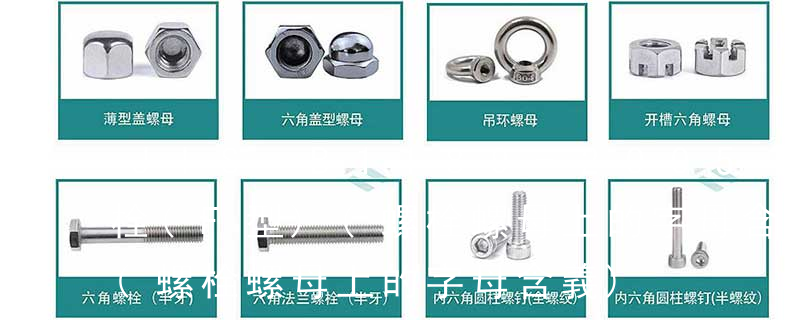 螺母依據屬性主要有國標(GB)、德標(DIN)、國際標準(ISO)、日標(JIS)、美標(ASTM/ANSI)等標準。其中、國標、德標、日標用M表示(例如M8、M16),美制、英制則用分數或#表示規格(如8#、10#、1/4、3/8)。螺母 1. 螺栓:由頭部和螺桿(帶有外螺紋的圓柱體)兩部分組成的一類緊固件,需與螺母配合,用于緊固連接兩個帶有通孔的零件。這種連接形式稱螺栓連接。如把螺母從螺栓上旋下,有可以使這兩個零件分開,故螺栓連接是屬于可拆卸連接。 2. 螺柱: