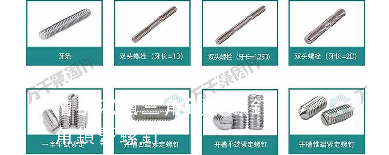 1.機螺釘 2.自攻螺釘 3.鉆尾螺釘 4.墻板釘 5.纖維板釘 6.木螺釘7.六角木螺釘 8.不脫出螺釘 9.組合螺釘 10.微型螺釘 11.家具螺釘 12.電子螺釘頭型:1.六角頭(hexagon head) 2.六角頭法蘭面(hexagon head with flange) 3.