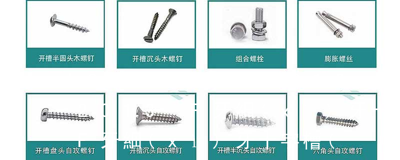 1.螺絲釘按照名稱可分為 機螺釘、自攻螺釘、鉆尾螺釘、墻板釘、纖維板釘、木螺釘、六角木螺釘、不脫出螺釘、組合螺釘、微型螺釘、家具螺釘、電子螺釘 2.按照頭型可分為 1)六角頭(hexagon head)2)六角頭法蘭面(hexagon
